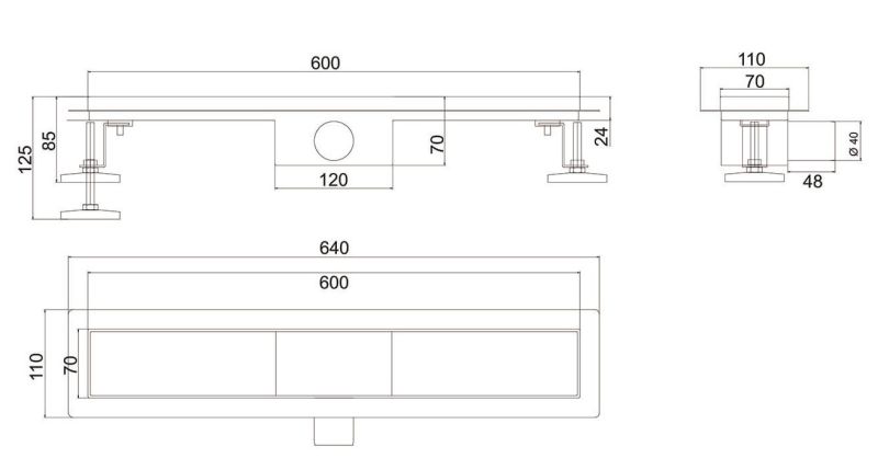 Душевой лоток РМС ТЛ-03-60х7 60см нержавеющая сталь