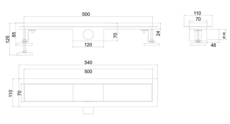 Диаметр сливого отверстия: 40 мм (в комплекте переходник на 50 мм).