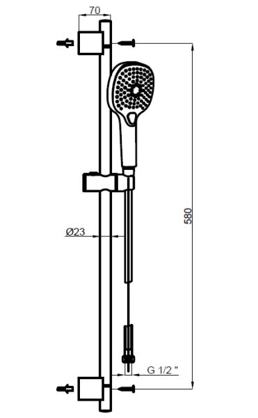 Размер верхнего душа, см:225