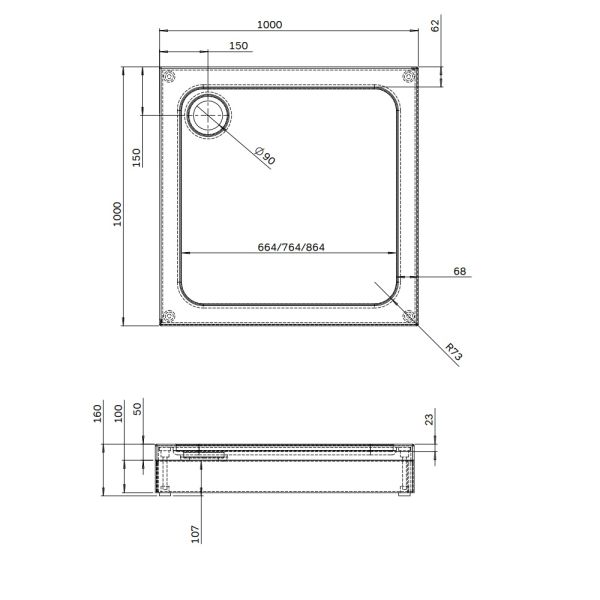Стандартные размеры, см:100x100