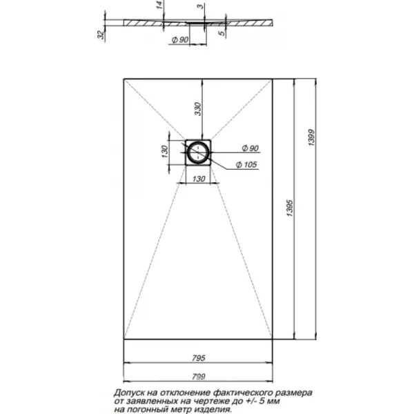 Душевой поддон Aquanet Pleasure 258878 140x80 см серый купить