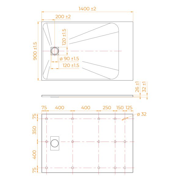 Материал исполнения SMC - стеклопластик или стеклокомпозит.Поддоны производятся на сложнейшем оборудовании под воздействием большого давления и высокой температуры.В результате получаются изделия по твердости поверхности не уступающие закалённому стеклу, а волокнистая структура материала и специальная конструкция поддонов позволяет выдерживать значительные механические нагрузки.Низкая теплопроводность материала, такая же как у дерева, позволяет поддерживать комфортную температуру поверхности поддона в процессе использования.