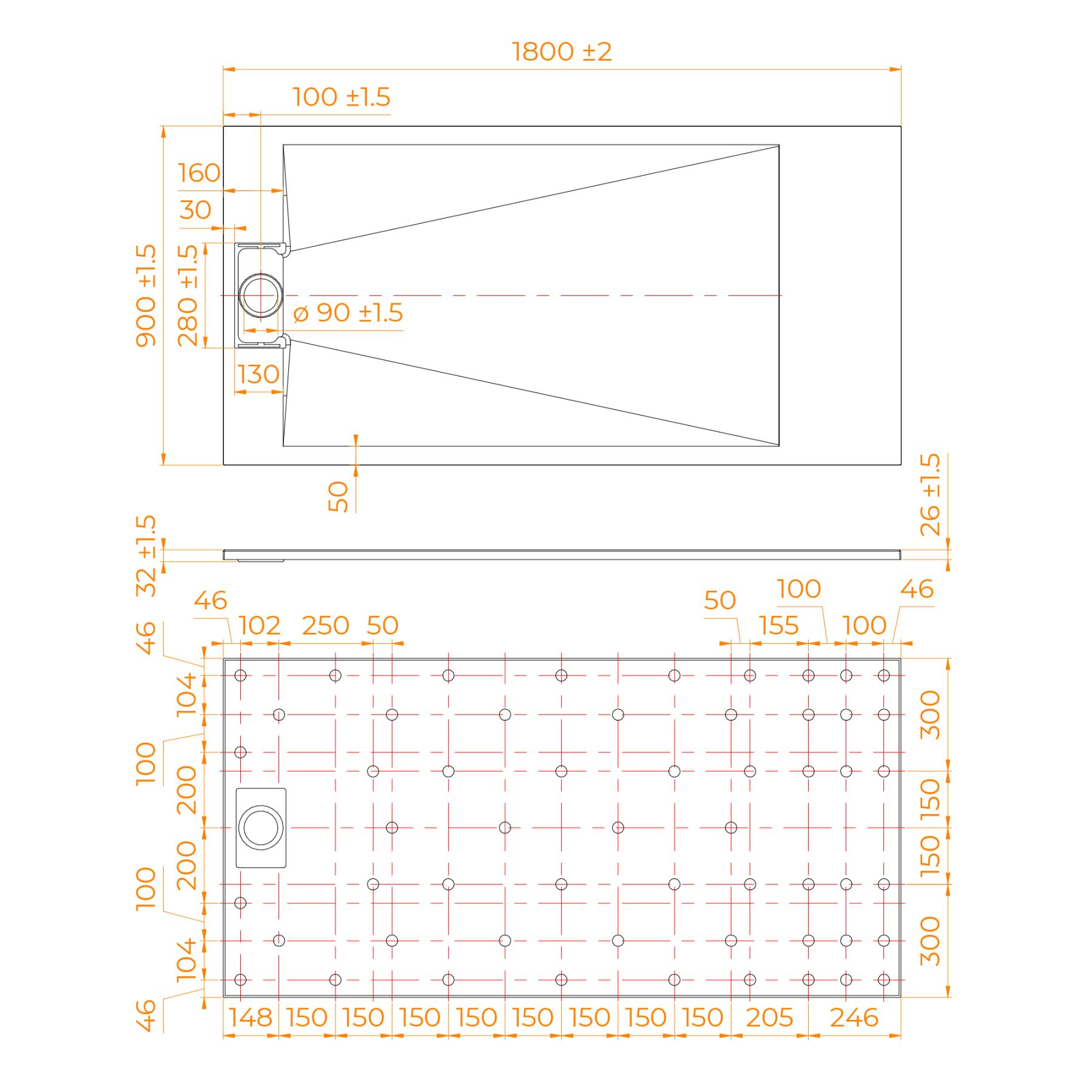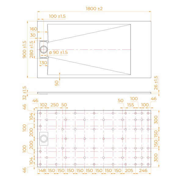 • Общая высота поддона: 26 мм.;