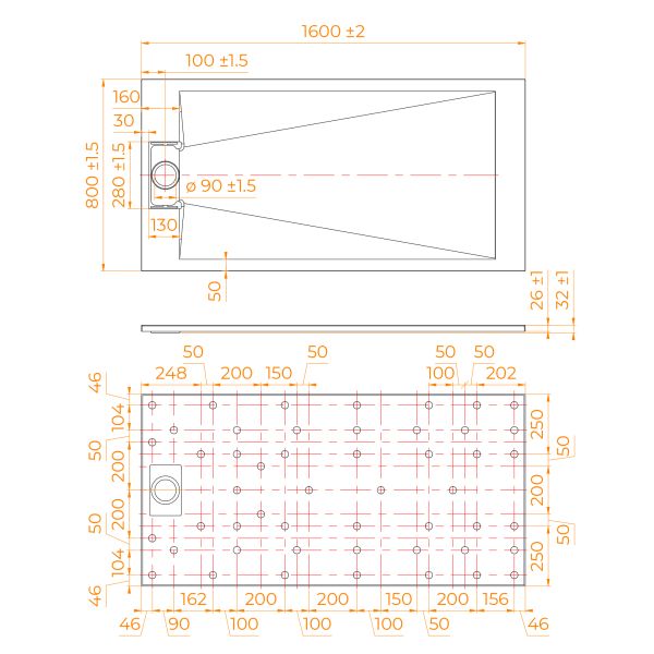 Материал исполнения SMC - стеклопластик или стеклокомпозит.Поддоны производятся на сложнейшем оборудовании под воздействием большого давления и высокой температуры.В результате получаются изделия по твердости поверхности не уступающие закалённому стеклу, а волокнистая структура материала и специальная конструкция поддонов позволяет выдерживать значительные механические нагрузки.Низкая теплопроводность материала, такая же как у дерева, позволяет поддерживать комфортную температуру поверхности поддона в процессе использования.