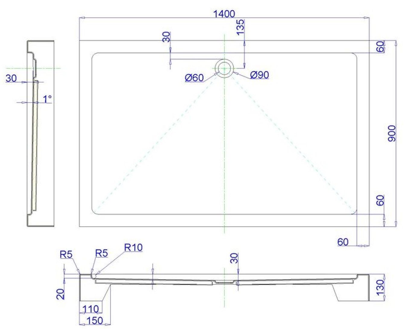 • Душевой поддон на ножках