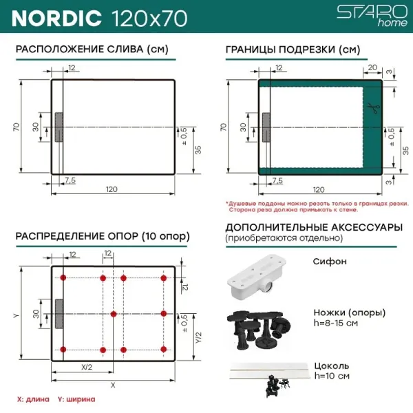 Душевой поддон Starohome NORDIC 21048471 120х70 см Подробнее