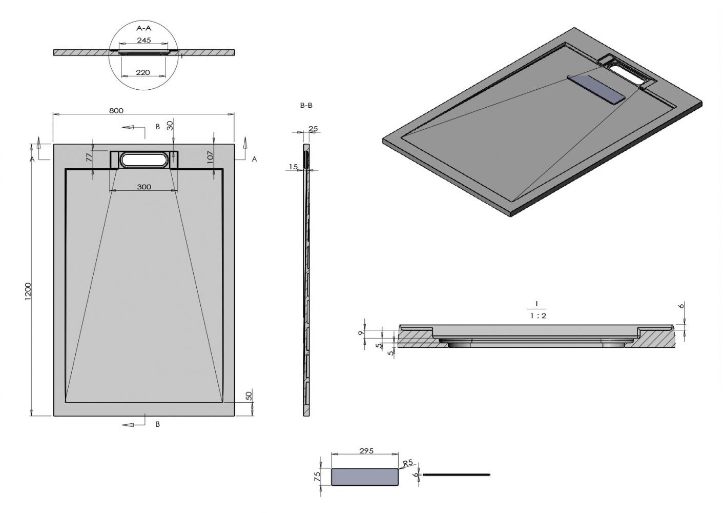 Душевой поддон Vincea VST-4SRL 120 х 80 см, прямоугольный, серый, VST-4SRL8012GДушевой поддон