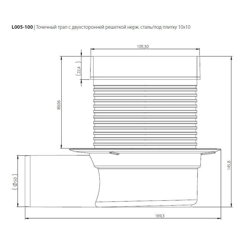 Точечный душевой трап Logan L005-100 с двухсторонней решеткой.Характеристики:Цвет решетки: нержавеющая сталь.