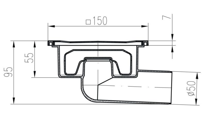 Компактный размер трапа – всего 150х150 мм, что позволяет оставить целостным дизайн пола.