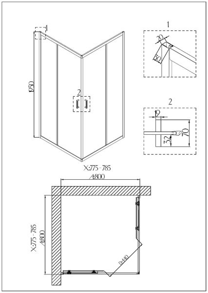 Душевое ограждение Niagara Nova NG 6688-08 (арт. 66880811)Две раздвижные двери.Размер 80х80х195 смТолщина стекла 6 мм, стекло каленое с водоотталкивающим покрытием.Петли стальные, установка двери универсальная.Ширина входа 44 см.ПОДДОН (не входит в комплект, его можно купить отдельно)