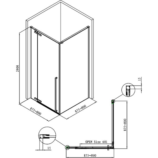 Исполнение полотна двери: прозрачное Optiwhite стекло, толщиной 8 мм.
