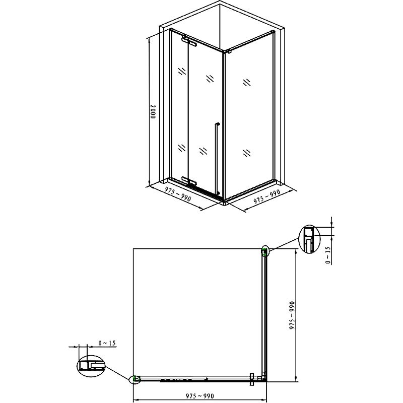 Габариты (ШxВxД): 990x2000x990 мм.