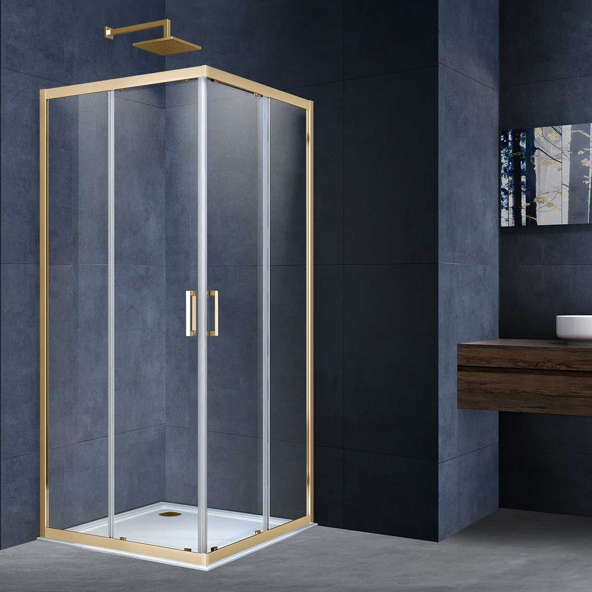 Душевой уголок Vincea Alpha VSS-3AL100CLG, 1000*1000, брашированное золото, стекло прозрачное купить