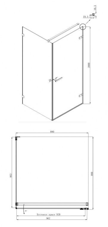 Тонкие пропорции петли придают ограждению легкость и оптически не перегружают ванную комнату. Распашной способ открытия двери предполагает удобный широкий вход, а также при интенсивном использовании изделия препятствует заеданию и смещению подвижных частей, что обеспечивает тихий ход дверей.