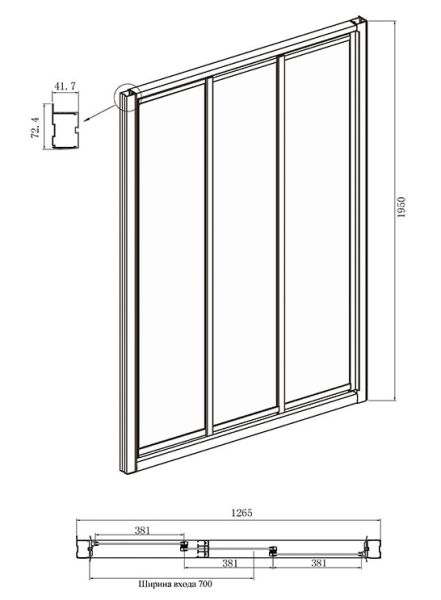 • Конструкция дверей: раздвижная