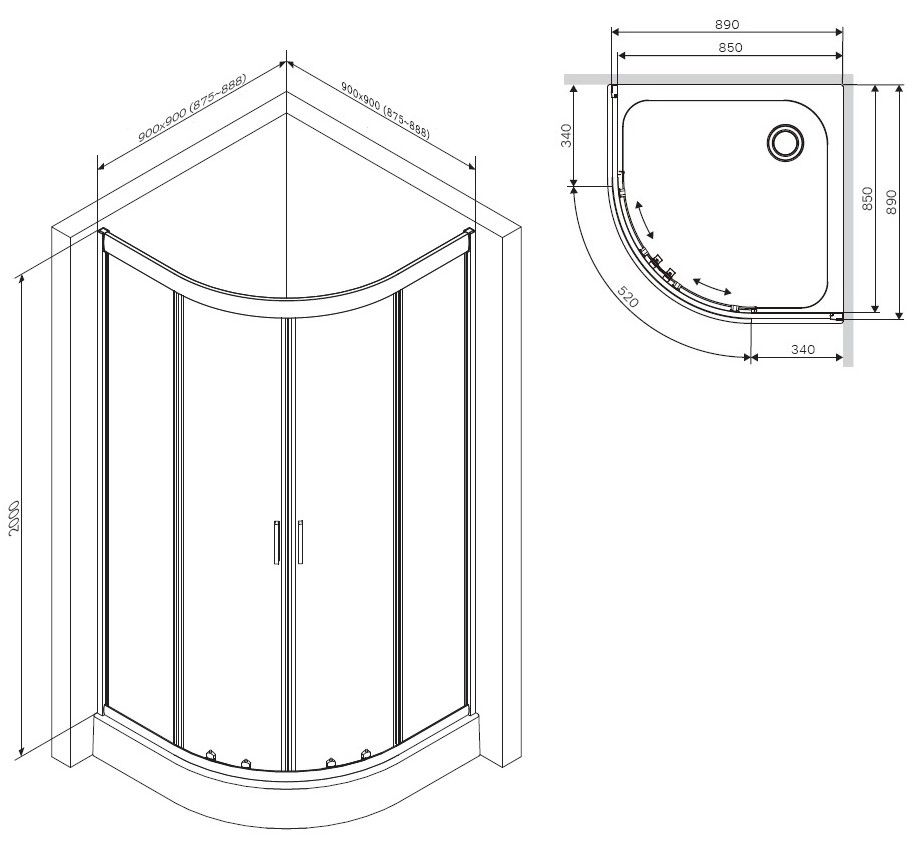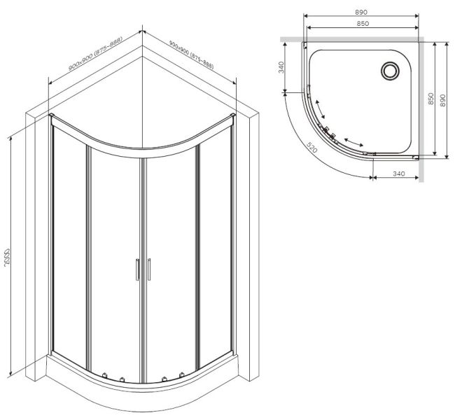 • Стандартные размеры, см: