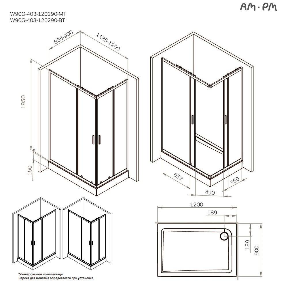 Душевой уголок Am.Pm Gem W90G-403-120290-MT 120x90 см без поддона хром матовый купить