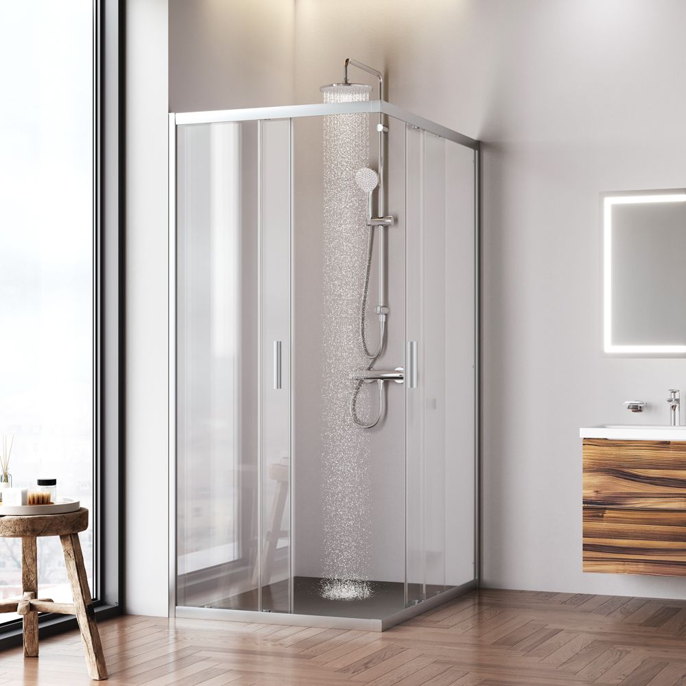 Душевое ограждение выполнено из ударопрочного закаленного стекла. Толщина фиксированного стекла 5 мм, толщина стекла двери 6 мм. Профили ограждения изготовлены из надежного алюминия с премиальным анодированным покрытием. Анодирование обеспечивает равномерный насыщенный цвет и особенную стойкость к механическим повреждениям.