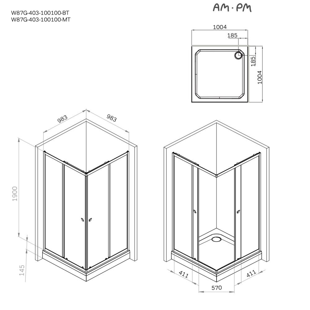 Душевой уголок AM.PM Sunny W87G-403-100100-BT профиль черный матовый 100х100 см