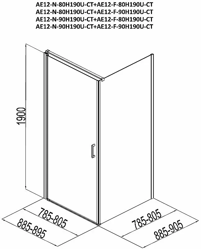 Душевой уголок Aquanet Cinetic AE12-N-80H190U-CT + AE12-F-80H190U-CT 254230 80x80 см стекло прозрачное профиль хром