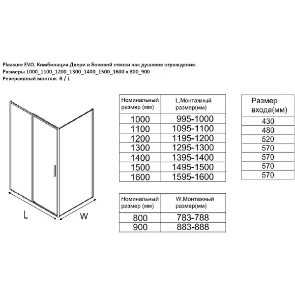 • Ширина входа: 520 мм.