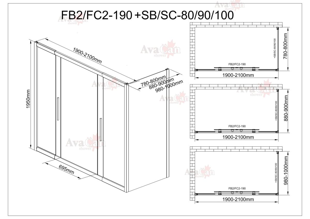 Душевой уголок AvaCan FB2 190-210 + SB90 чёрный