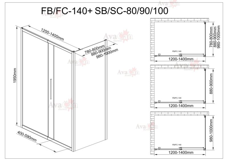 Душевой уголок AvaCan FС 120-140 + SС 90 хром