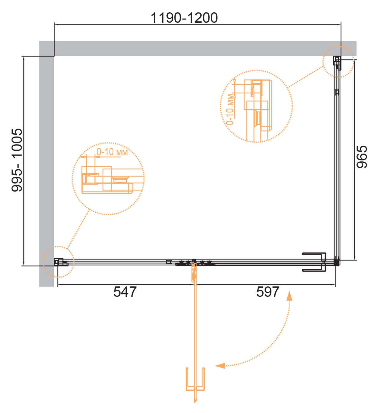 Монтаж: пристенный в угол