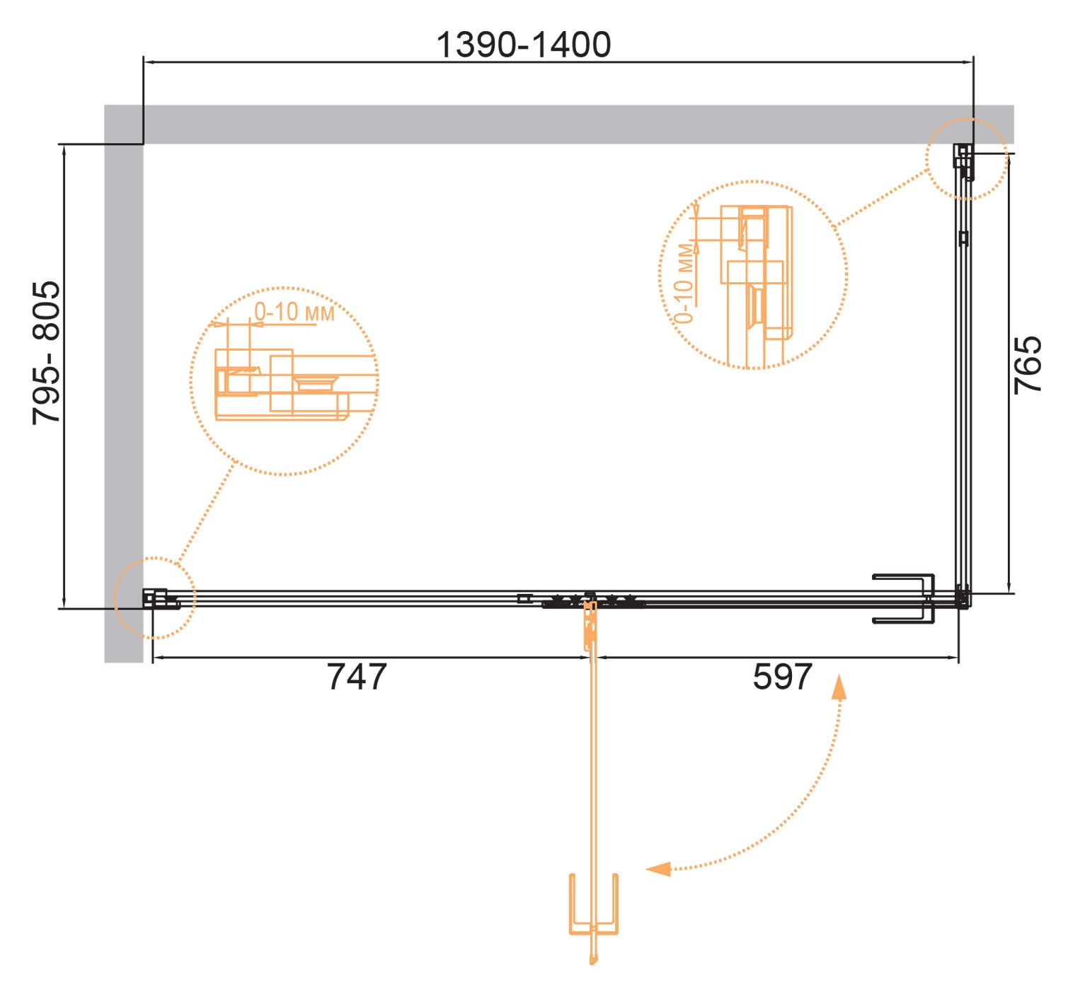 Монтаж: пристенный в угол