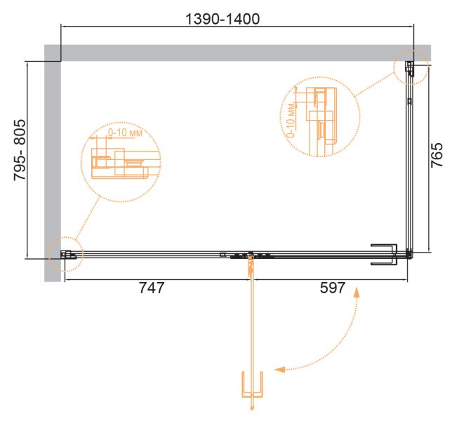 Монтаж: пристенный в угол