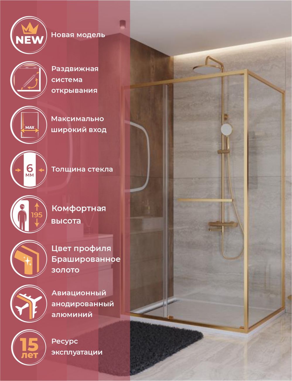 Душевой уголок CEZARES LUX-AH-FS-11-120/90-C-BORO брашированное золото купить