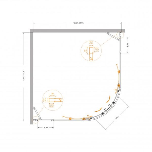 Душевой уголок CEZARES MOLVENO-R-22-100+30-C-GM-IV