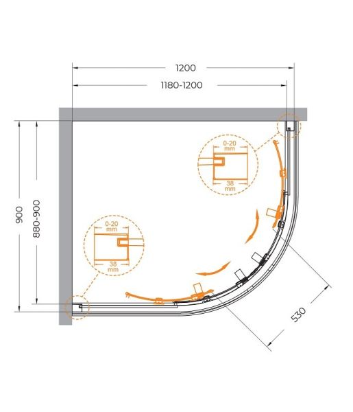 Душевой уголок CEZARES RELAX-304-RH-2-120/90-C-BORO