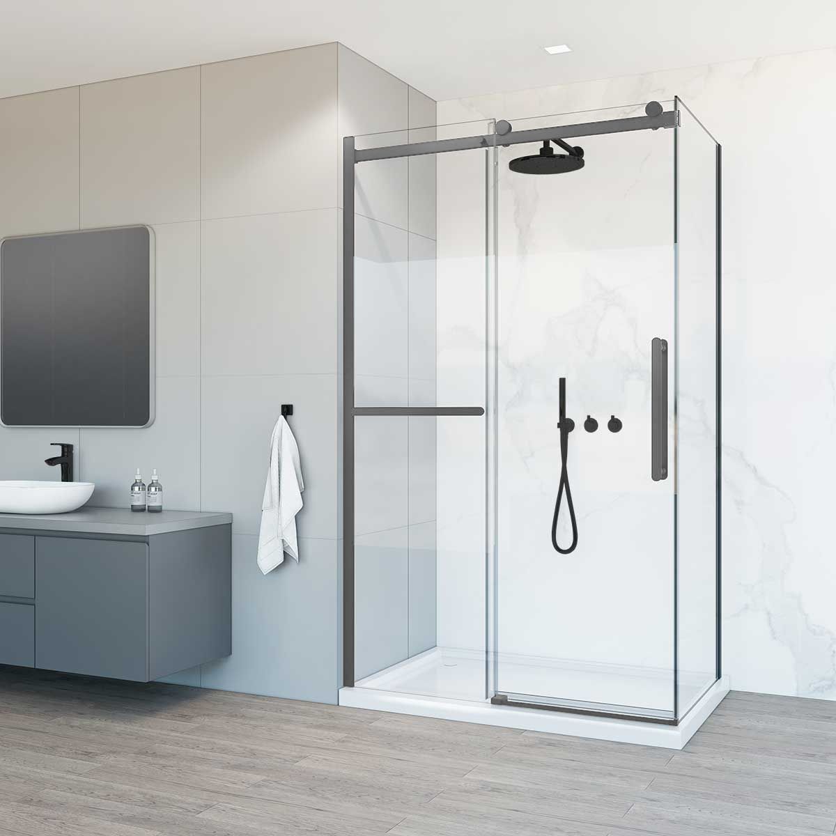 Душевой уголок Vincea Como Soft VSR-1CS9011CLGM, 1100*900, вороненая сталь, стекло прозрачное купить