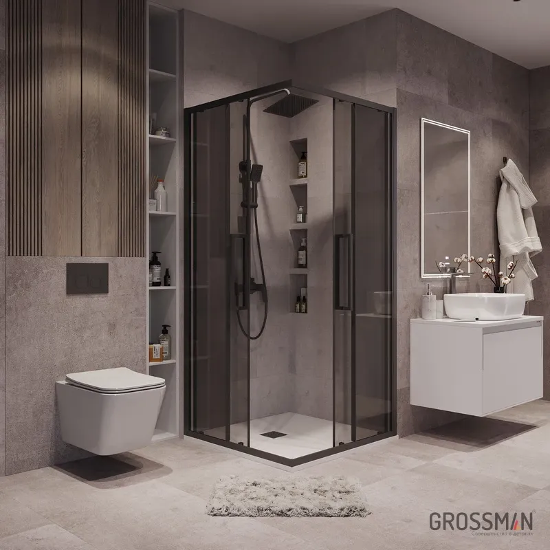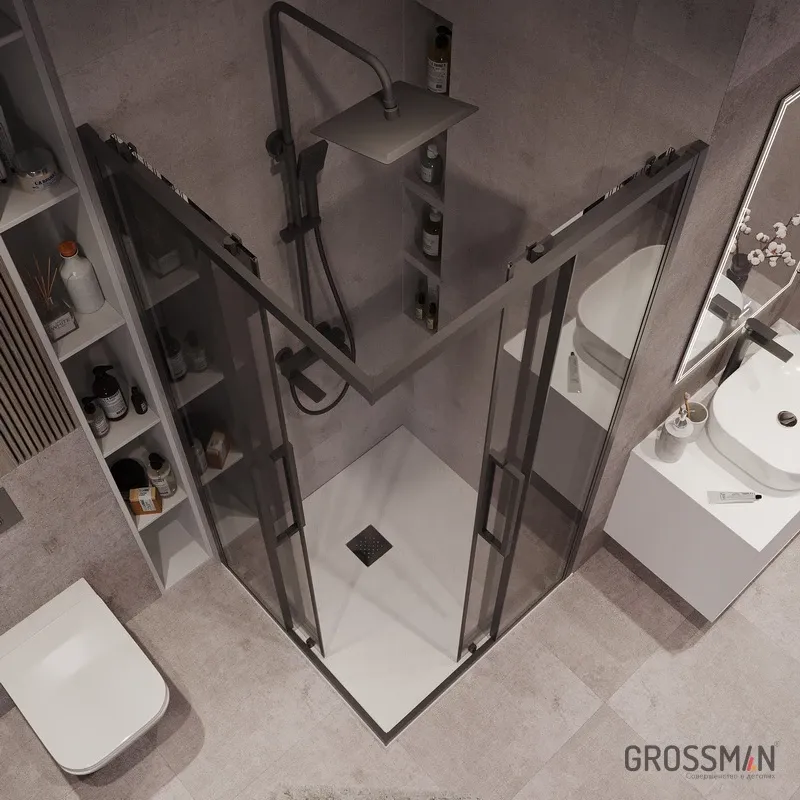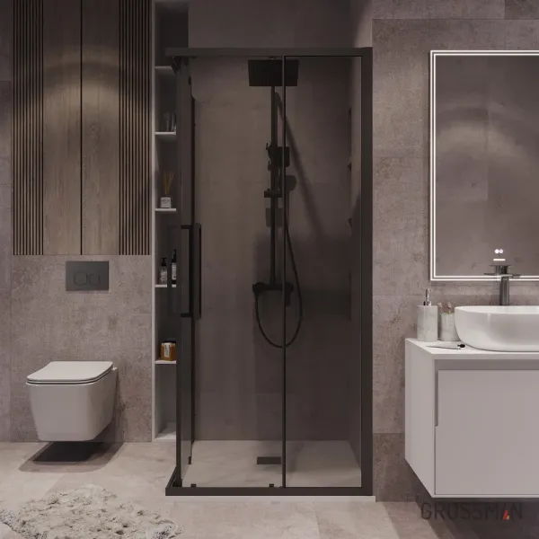 Душевой уголок Grossman Cosmo 300.K33.02.1010.21.10 100x100 см стекло тонированное профиль чёрный матовый купить