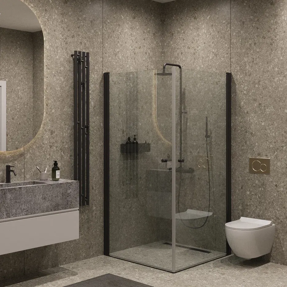Душевой уголок на монопетле by Deonria U-80-79-6-T-BR1 80x79см чёрный/прозрачный