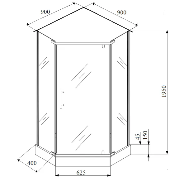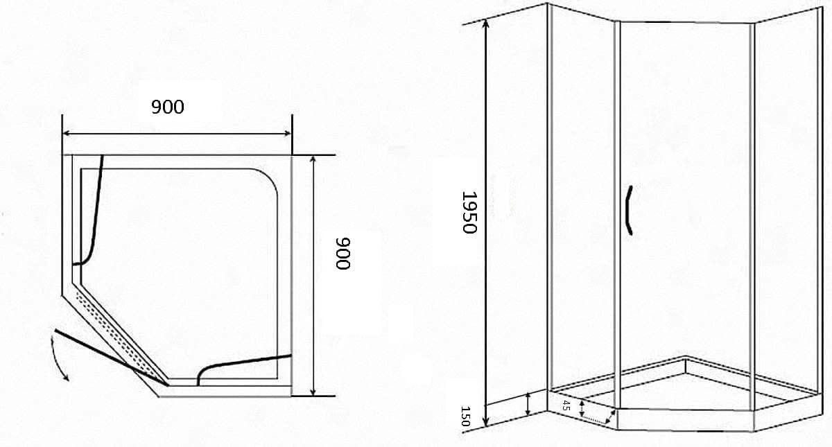 Прочная конструкция из закаленного стекла гарантирует максимально долгий срок эксплуатации душевого уголка. Поддон из ABS-пластика высотой 15 см обеспечивает комфортное использование для всех членов семьи.