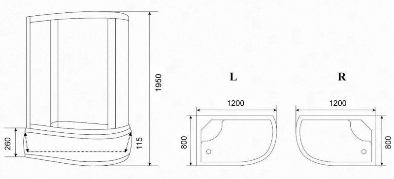Уголок ZEM1201ВR душевой PARLY с поддоном (120х80х195)Размер: 120х80х195