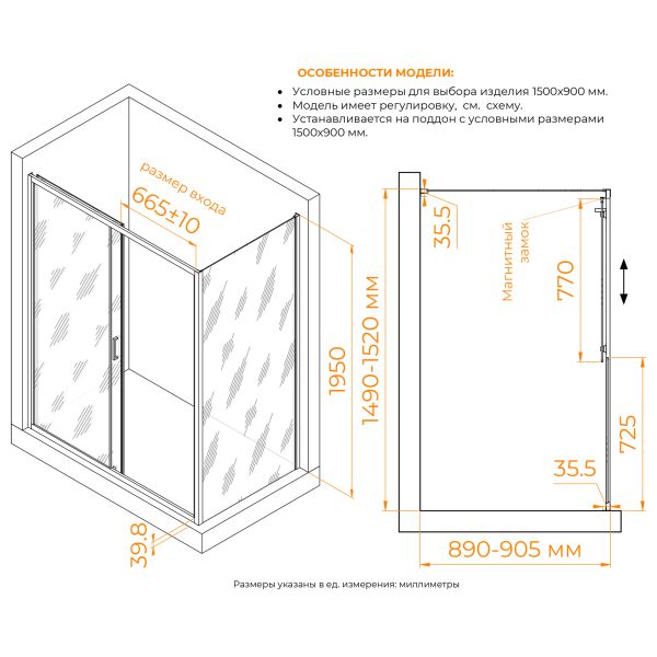 - Размеры с диапазоном регулировок: (1190-1220)x(790-805) мм