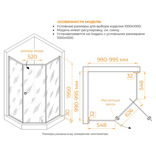 - Конструкция дверей: Распашная