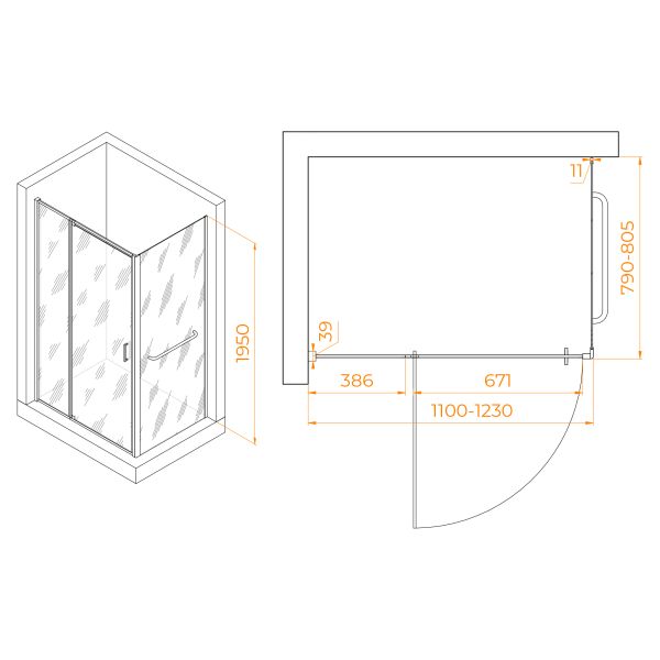 Душевой уголок RGW PA-078-1 (RGW PA-008 + Z-060-2) 3508078118-11 110x80см хром