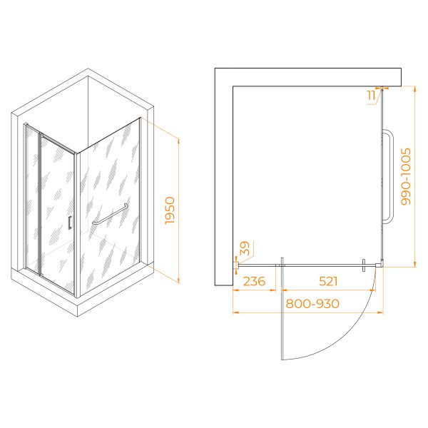 Душевой уголок RGW PA-078-1 (RGW PA-008 + Z-060-2) 3508078180-11 80x100см хром