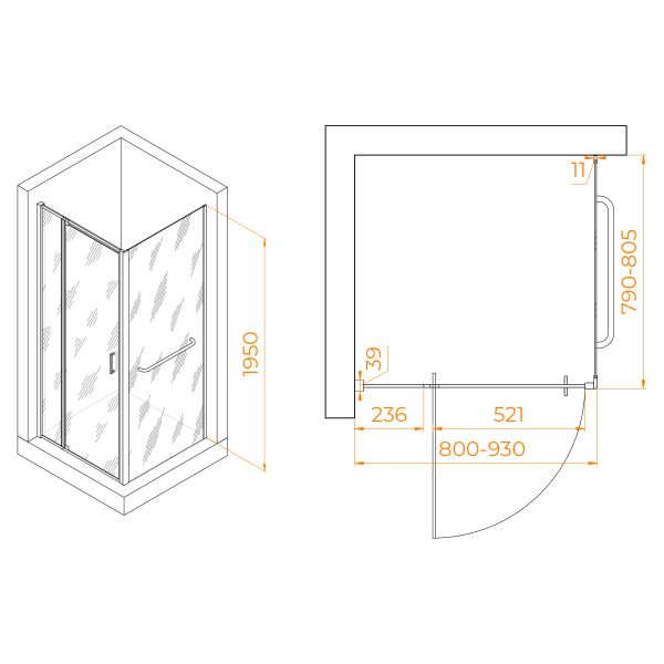 Душевой уголок RGW PA-078-1 (RGW PA-008 + Z-060-2) 3508078188-11 80x80см хром