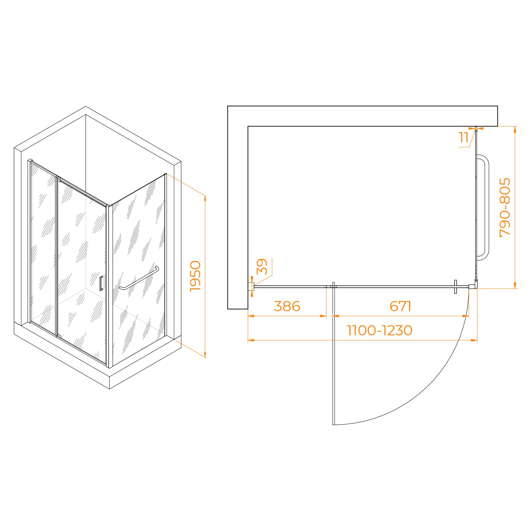 Душевой уголок RGW PA-078-1B (RGW PA-008B + Z-060-2B) 3508078118-14 110x80см чёрный
