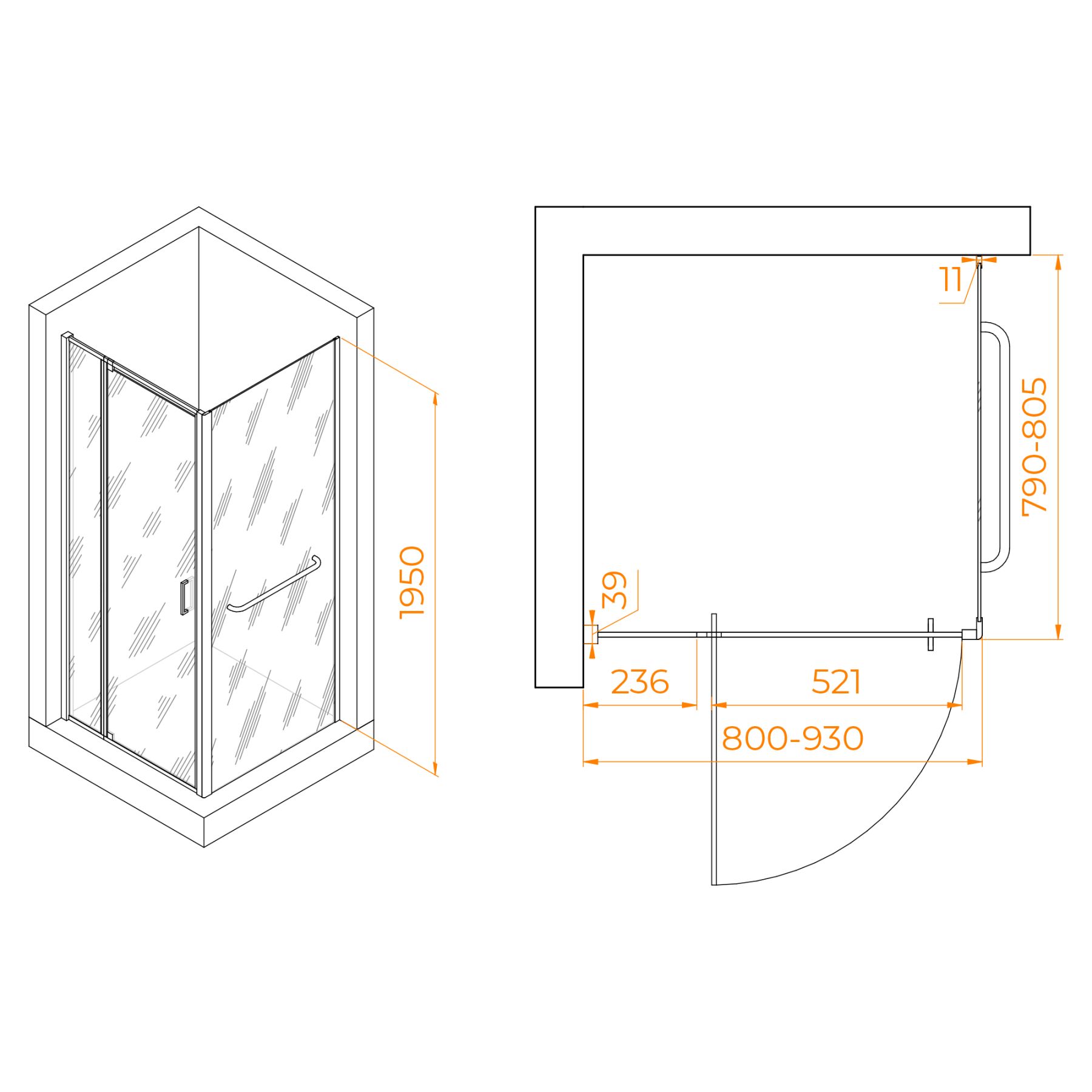 Душевой уголок RGW PA-078-1B (RGW PA-008B + Z-060-2B) 3508078188-14 80x80см чёрный