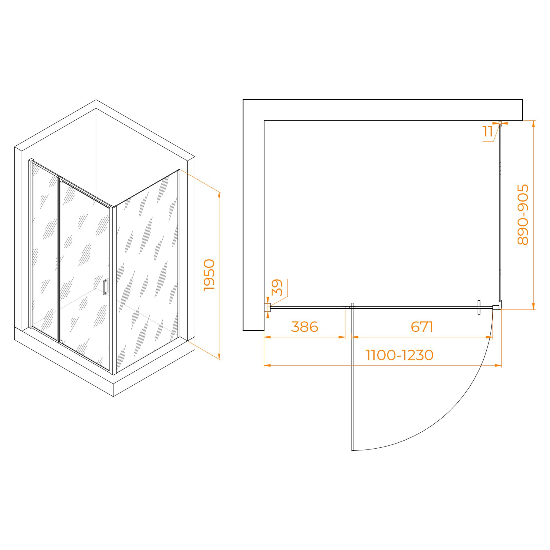 Душевой уголок RGW PA-078B (RGW PA-008B + Z-050-2B) 350807819-14 110x90см чёрный