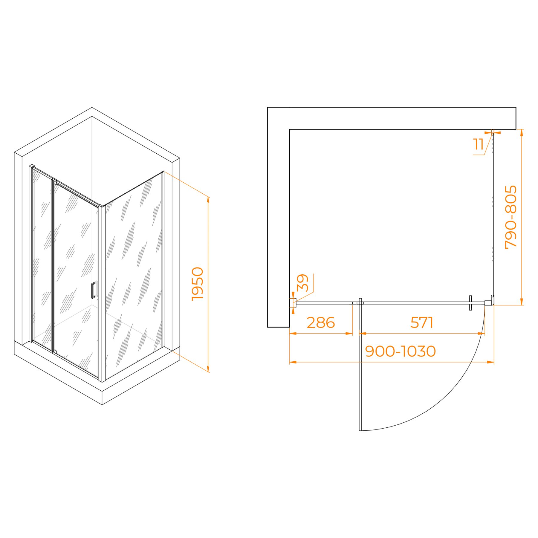 Душевой уголок RGW PA-078B (RGW PA-008B + Z-050-2B) 350807898-14 90x80см чёрный