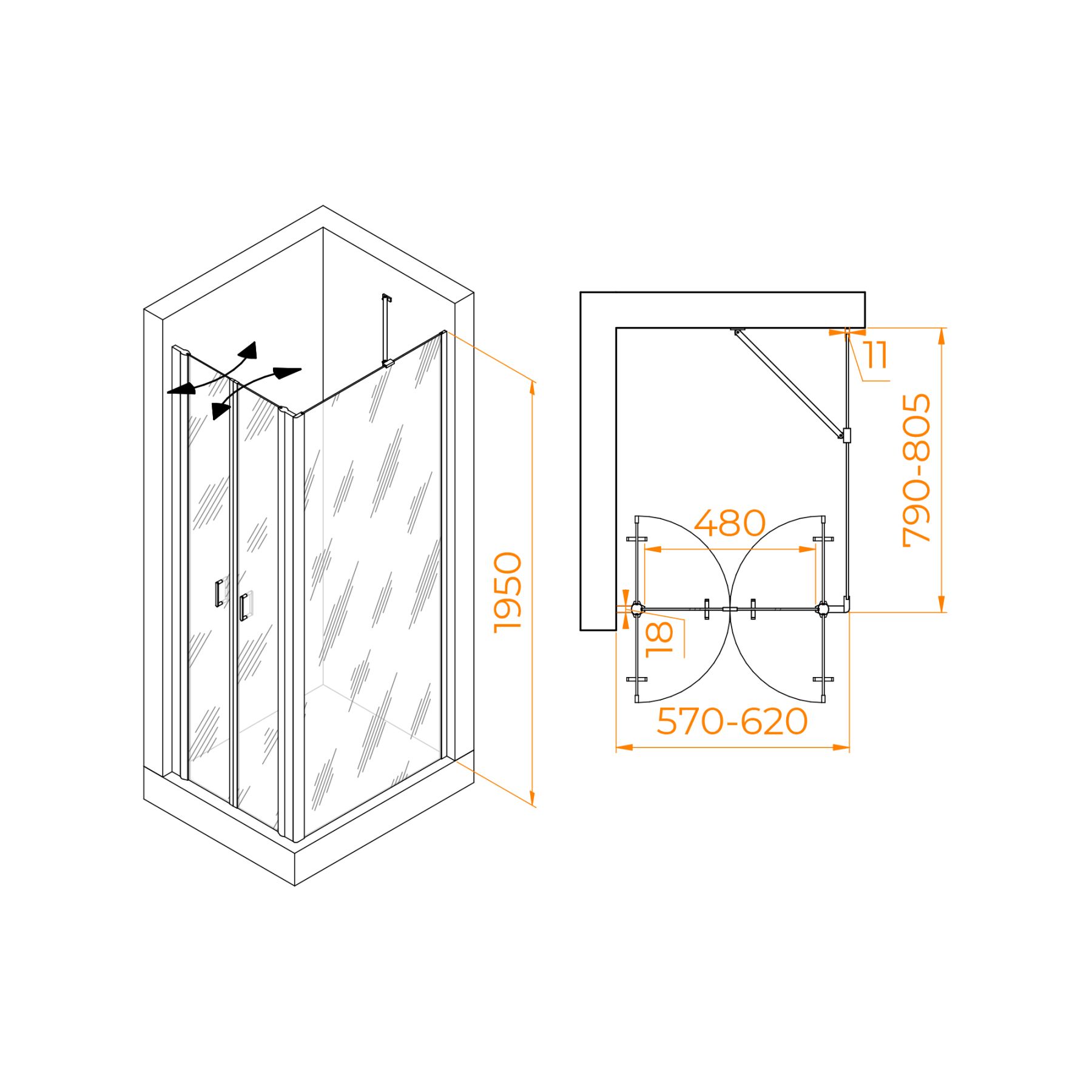 Душевой уголок RGW PA-144B (PA-104B+Z-050-2B+O-204B) 060814468-14 60x80см чёрный
