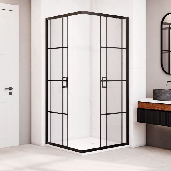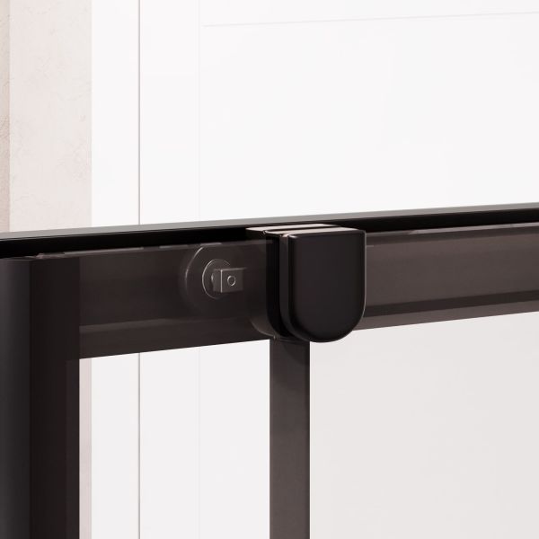 - Прочность и стиль: Закаленное стекло 6 мм устойчиво к нагрузкам, а строгий черный профиль задает современный акцент.