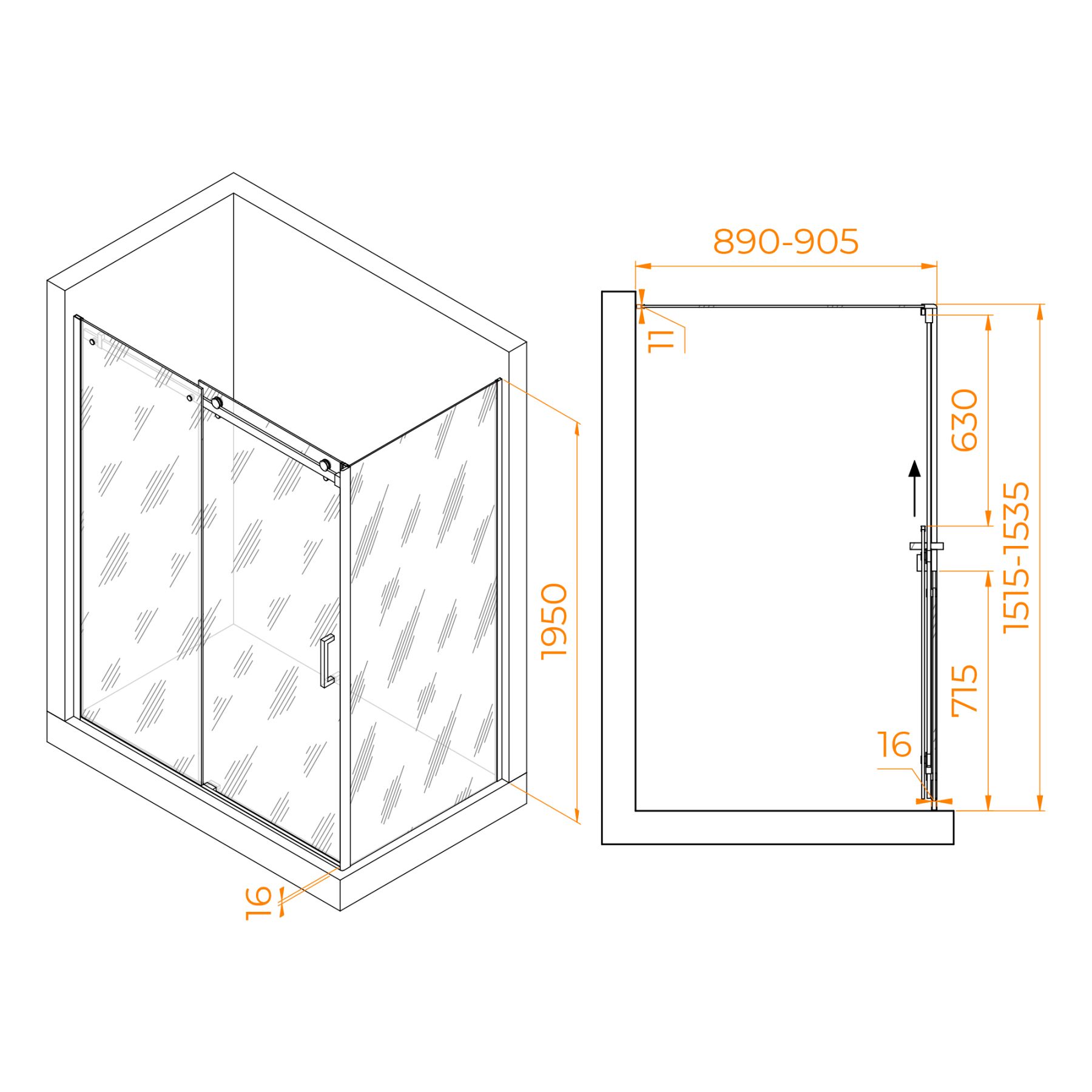 Душевой уголок RGW TO-44-1 (TO-14 + Z-060-2) 020744159-11 150x90см хром купить